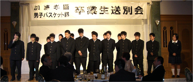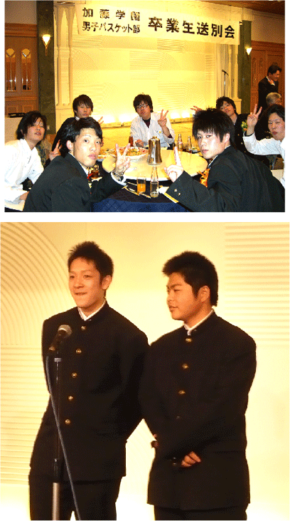 | 3月2日ブケ東海沼津にて、バスケ部19期生の送別会が行なわれました。3年間の苦しかった日もここいる仲間がいたからこそ、たのしいバスケができた、熱いチームでした。 |